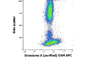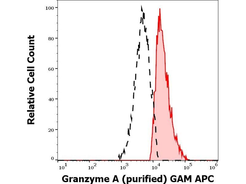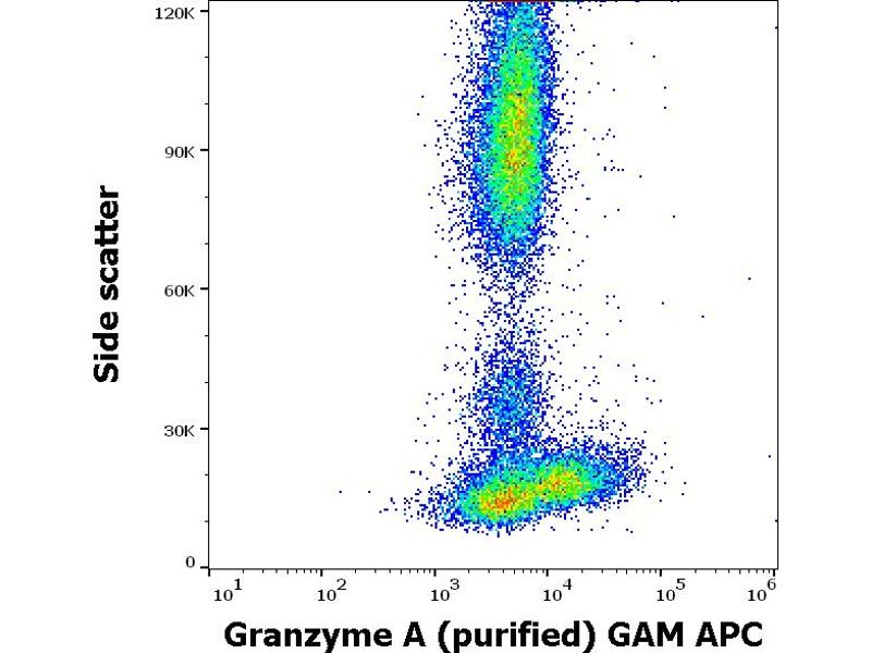 The mouse monoclonal CB9 recognizes granzyme A, a 28 kDa serine protease expressed intracellularly in activated Tc cells and NK cells.