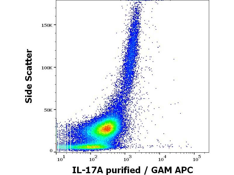 Interleukin 17A,Interleukin 17A (IL-17A) is a proinflammatory cytokine produced by activated T cells. IL-17A-mediated downstream pathways induce the production of inflammatory molecules, chemokines, antimicrobial peptides, and remodeling proteins. It plays an important role in connecting T cell-mediated adaptive immunity and acute inflammatory response to destroy extracellular bacteria and fungi. It is the signature effector cytokine of Th17 cells, and in this role it primarily induces neutrophil activation and recruitment at infection and inflammatory sites. High levels of IL-17A are associated with rheumatoid arthritis, psoriasis, multiple sclerosis, and another inflammatory diseases, including lung injugy during severe COVID 19. This cytokine also contributes to germinal center formation by regulating the chemotactic response of B cells to CXCL12 and CXCL13, enhancing retention of B cells within the germinal centers, B cell somatic hypermutation rate and selection toward plasma cells. It is an effector cytokine for invariant NKT cells (iNKT), and it is involved in epithelial barrier formation upon injury.,Interleukin 17