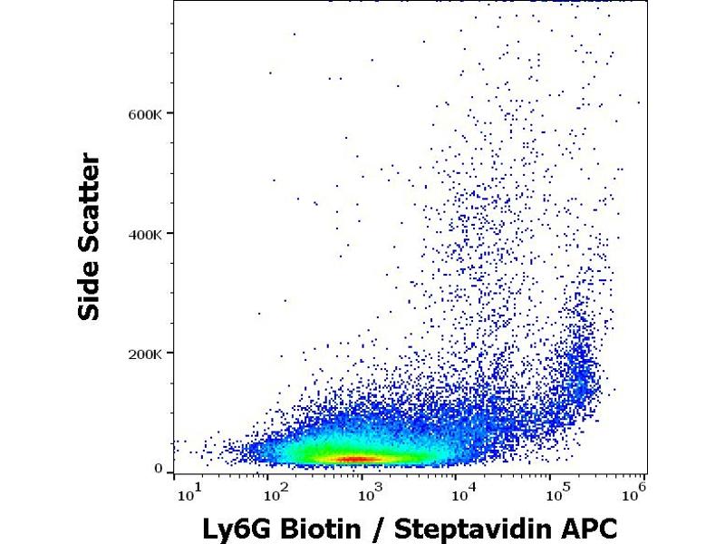 Lymphocyte antigen 6 complex, locus G,Ly6G is a component of the myeloid differentiation antigen Gr-1, together with Ly6C. Ly6G is a good marker for detection of peripheral neutrophils. Expression of Gr-1 in bone marrow correlates with granulocyte differentiation and maturation. Physiological role of Ly6G remains still unclear. Its treatment with antibodies in vivo leads to neutropenia and has inhibitory effect on local immune responses.,Gr1, Gr-1, Ly-6G