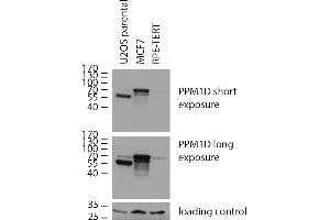 Protein phosphatase, Mg2+/Mn2+ dependent 1D,PPM1D is a Mg2+/Mn2+ dependent protein phosphatase 1D with inducible expression in response to various types of environmental stress. This expression is p53-dependent, and subsequently PPM1D negatively regulates the p53-mediated transcription, thus it suppresses the apoptosis. PPM1D contributes to development of carcinomas, and seems to be a promissing therapeutic target. Amplification of PPM1D is associated with breast cancer.,WIP1, Protein phosphatase 1D, JDVS, WIP1, IDDGIP