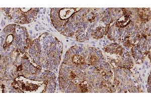 Immunohistochemistry on paraffin sections. Heat Induced Epitope Retrieval (HIER): Epitope Retrieval Solution pH 6. Suggested dilution: 1:100 for 30 minutes at 25 °C. This is provided as a guide and users should determine their own optimal working dilutions. Immunohistochemical (IHC) staining techniques allow for the visualization of antigens via the sequential application of a specific antibody to the antigen (primary antibody), a secondary antibody to the primary antibody and an enzyme complex with a chromogenic substrate with interposed washing steps. The enzymatic activation of the chromogen results in a visible reaction product at the antigen site. The specimen may then be counterstained and coverslipped. Results are interpreted using a light microscope.