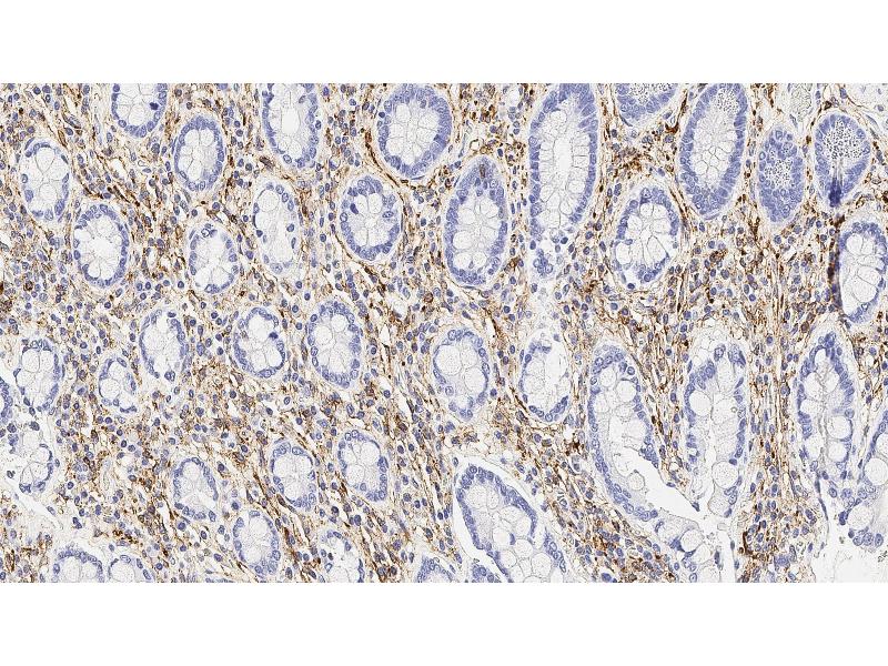 Immunohistochemistry on paraffin sections. Heat Induced Epitope Retrieval (HIER): Epitope Retrieval Solution pH 6. Suggested dilution: 1:100 for 30 minutes at 25 °C. This is provided as a guide and users should determine their own optimal working dilutions. Immunohistochemical (IHC) staining techniques allow for the visualization of antigens via the sequential application of a specific antibody to the antigen (primary antibody), a secondary antibody to the primary antibody and an enzyme complex with a chromogenic substrate with interposed washing steps. The enzymatic activation of the chromogen results in a visible reaction product at the antigen site. The specimen may then be counterstained and coverslipped. Results are interpreted using a light microscope.