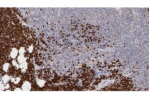 Immunohistochemistry on paraffin sections. Heat Induced Epitope Retrieval (HIER): Epitope Retrieval Solution pH 6. Suggested dilution: 1:100 for 30 minutes at 25 °C. This is provided as a guide and users should determine their own optimal working dilutions. Immunohistochemical (IHC) staining techniques allow for the visualization of antigens via the sequential application of a specific antibody to the antigen (primary antibody), a secondary antibody to the primary antibody and an enzyme complex with a chromogenic substrate with interposed washing steps. The enzymatic activation of the chromogen results in a visible reaction product at the antigen site. The specimen may then be counterstained and coverslipped. Results are interpreted using a light microscope.