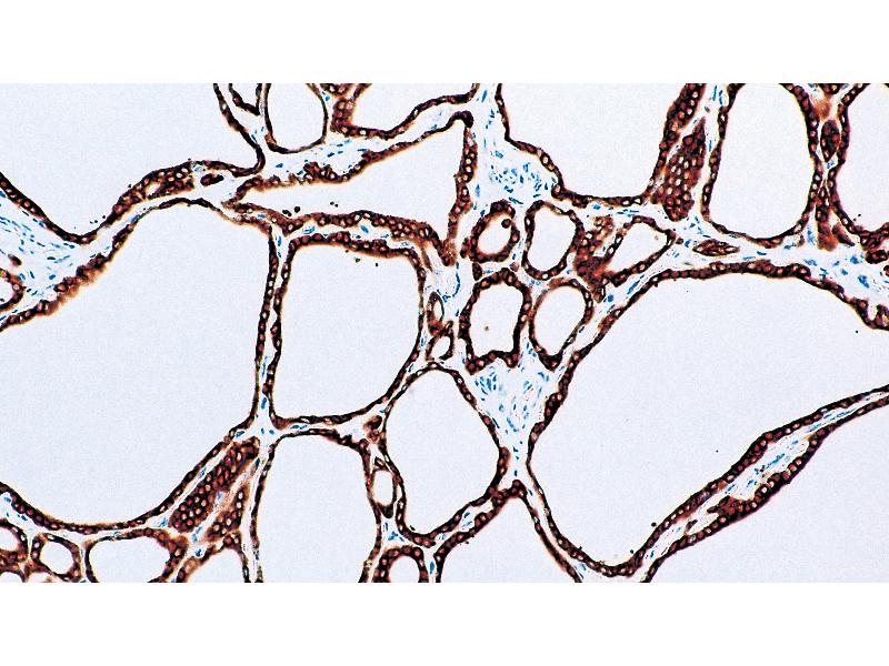 Der Maus Monoklonal anti-Thyroperoxidase Antikörper wird verwendet zum Nachweis von Thyroperoxidase in Proben von Human. Er wurde validiert für IHC und IHC (p).