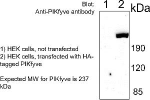 Rabbit polyclonal antibody to murine PIKfyve with reactivity to mouse/rat and human PIKfyve