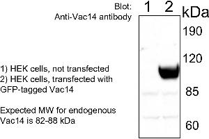 - Rabbit polyclonal antibody to human Vac14 with reactivity to mouse/rat and human Vac14