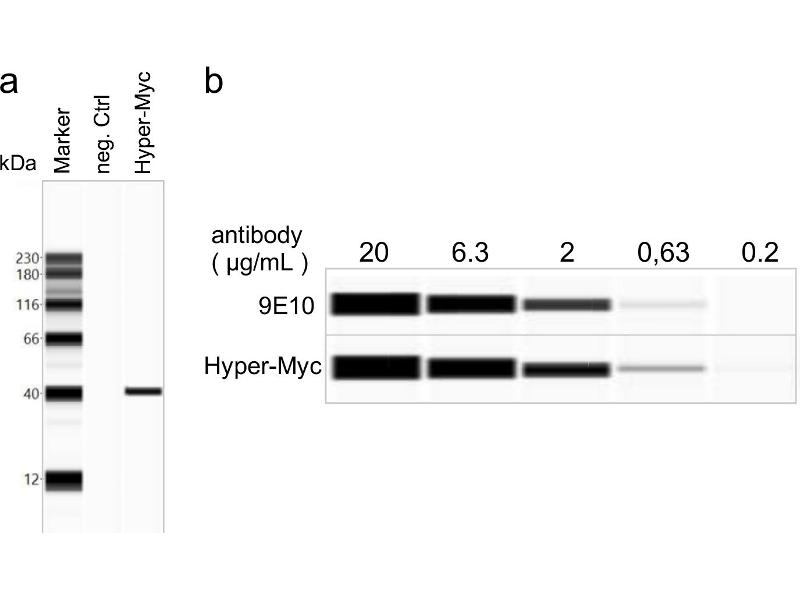 - Synthetic peptide of human c-Myc, aa408-439. The c-Myc or myc-tag is widely used to detect the expression of recombinant proteins in bacteria, yeast, insect and mammalian cell systems. Hyper-Myc is an improved engineered anti c-Myc Tag antibody. It shows a higher affinity and stability in direct comparison to hybridoma antibody 9E10 that shares the same epitope. It is further thoroughly characterized by cross-reactivity profiling on 28895 human epitopes showing higher specificity and increased monovalent affinity.