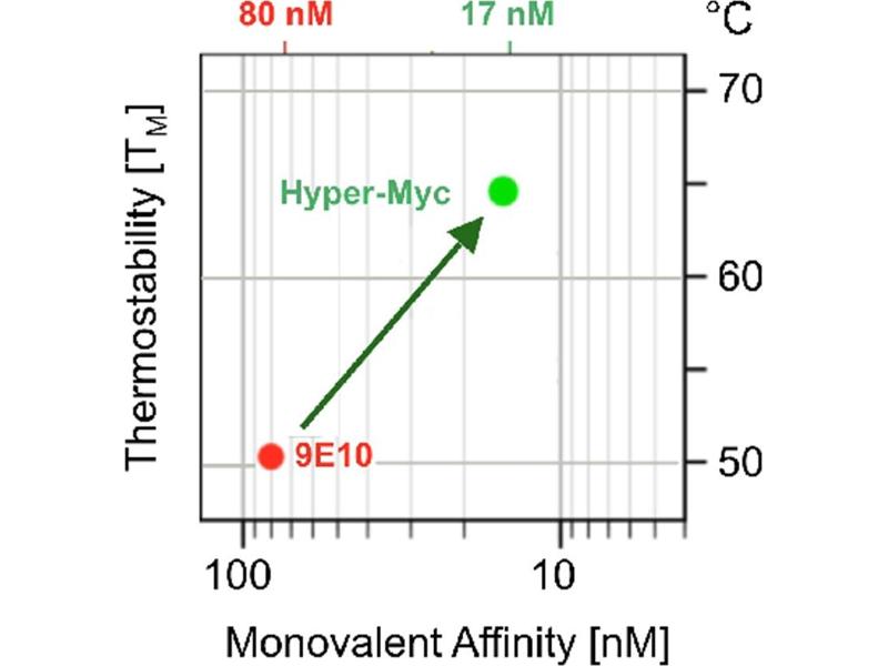 - Synthetic peptide of human c-Myc, aa408-439. The c-Myc or myc-tag is widely used to detect the expression of recombinant proteins in bacteria, yeast, insect and mammalian cell systems. Hyper-Myc is an improved engineered anti c-Myc Tag antibody. It shows a higher affinity and stability in direct comparison to hybridoma antibody 9E10 that shares the same epitope. It is further thoroughly characterized by cross-reactivity profiling on 28895 human epitopes showing higher specificity and increased monovalent affinity.