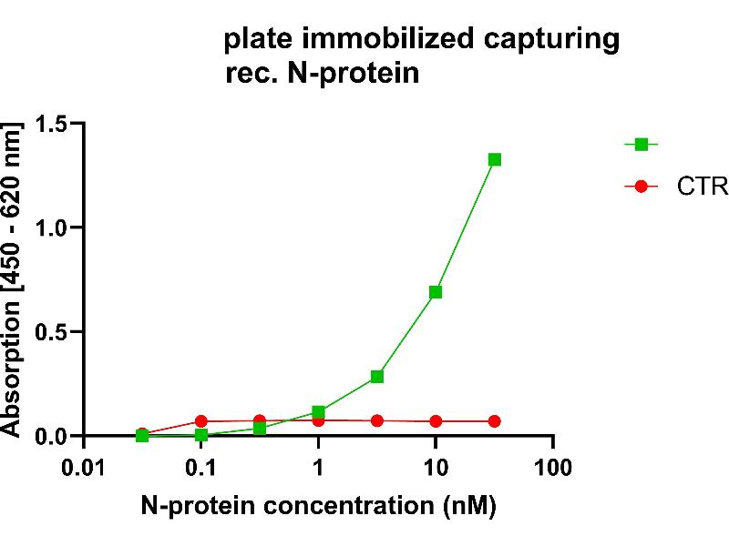 No immunization, animal-free antibody development. Antigen: Nucleocapsid protein: MSDNGPQSNQRSAPRITFGGPTDSTDNNQNGGRNGARPKQRRPQGLPNNTASWFTALTQHGKEELRFPRGQGVPINTNSGPDDQIGYYRRATRRVRGGDGKMKELSPRWYFYYLGTGPEASLPYGANKEGIVWVATEGALNTPKDHIGTRNPNNNAATVLQLPQGTTLPKGFYAEGSRGGSQASSRSSSRSRGNSRNSTPGSSRGNSPARMASGGGETALALLLLDRLNQLESKVSGKGQQQQGQTVTKKSAAEASKKPRQKRTATKQYNVTQAFGRRGPEQTQGNFGDQDLIRQGTDYKHWPQIAQFAPSASAFFGMSRIGMEVTPSGTWLTYHGAIKLDDKDPQFKDNVILLNKHIDAYKTFPPTEPKKDKKKKTDEAQPLPQRQKKQPTVTLLPAADMDDFSRQLQNSMSGASADSTQA