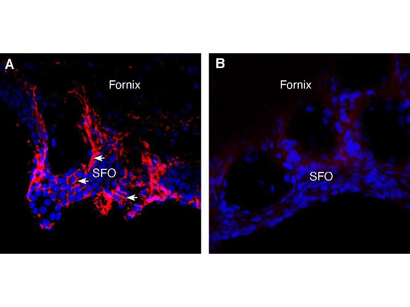 - WCH4, Mercurial-insensitive water channel, MIWC,Aquaporin 4 (AQP-4) belongs to a family of membrane proteins that allow passage of water and certain solutes through biological membranes. The family is composed of 13 members (AQP-0 to AQP-12).The aquaporins can be divided into two functional groups based on their permeability characteristics: the aquaporins that are only permeated by water and the aquaglyceroporins that are permeated by water and other small solutes such as glycerol. AQP-4 together with AQP-1, AQP-2 and AQP-5 belong to the first group1. Little is known about the function of the two newest members, AQP-11 and AQP-12.The proteins present a conserved structure of six transmembrane domains with intracellular N- and C-termini. The functional channel is a tetramer but each subunit has a separate pore and therefore the functional channel unit, contains four pores1.AQP-4 is the major membrane water channel in the central nervous system. The channel is expressed in astrocyte foot processes in direct contact with capillary vessels in the brain suggesting a role in water transport under normal and pathological conditions. Indeed, transgenic mice lacking AQP-4 have reduced brain swelling and improved neurological outcome following water intoxication and focal cerebral ischemia. In contrast, brain swelling and clinical outcome are worse in AQP-4-null mice in models of vasogenic (fluid leak) edema caused by freeze-injury and brain tumor, probably due to impaired AQP-4-dependent brain water clearance2.In addition, it has been recently shown that neuromyelitis optica (NMO), an inflammatory demyelinating disease that selectively affects optic nerves and spinal cord, is caused by the development of an autoantibody directed against AQP-43.