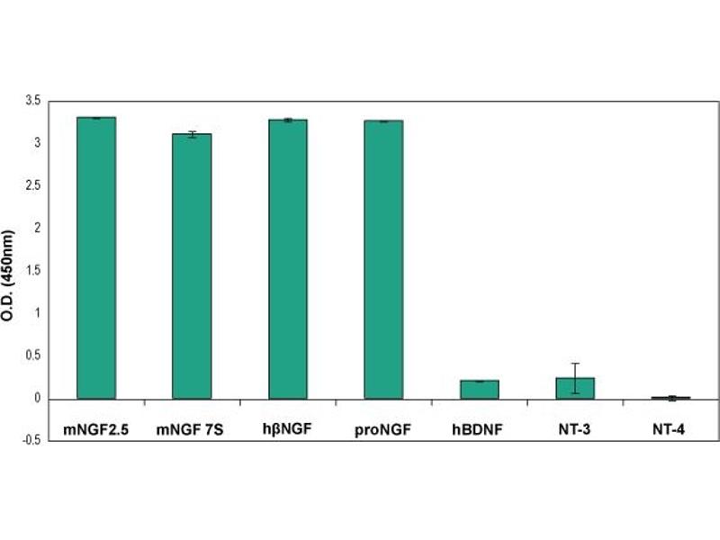 - The antibody has minimal cross-reactivity with BDNF, NT-3, and NT-4/5.