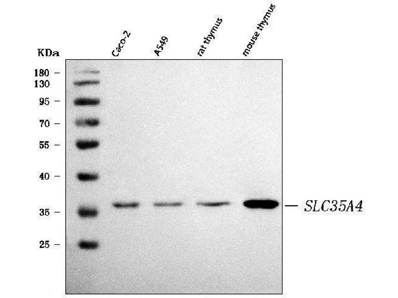 - Anti-SLC35A4 Antibody (ABIN7598997). Tested in ELISA, WB applications. This antibody reacts with Human, Mouse, Rat. This is a premium antibody that guarantees superior quality, high affinity, and strong signals with minimal background in Western blot applications.