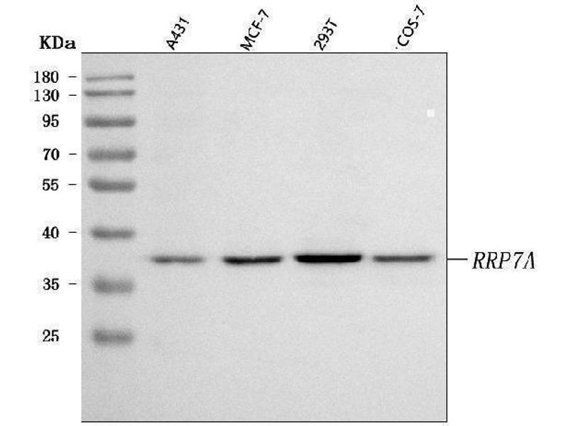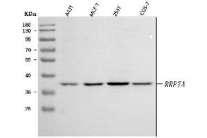 - Anti-RRP7A Antibody (ABIN7599044). Tested in ELISA, Flow Cytometry, IF, IHC, ICC, WB applications. This antibody reacts with Human, Monkey. This is a premium antibody that guarantees superior quality, high affinity, and strong signals with minimal background in Western blot applications.