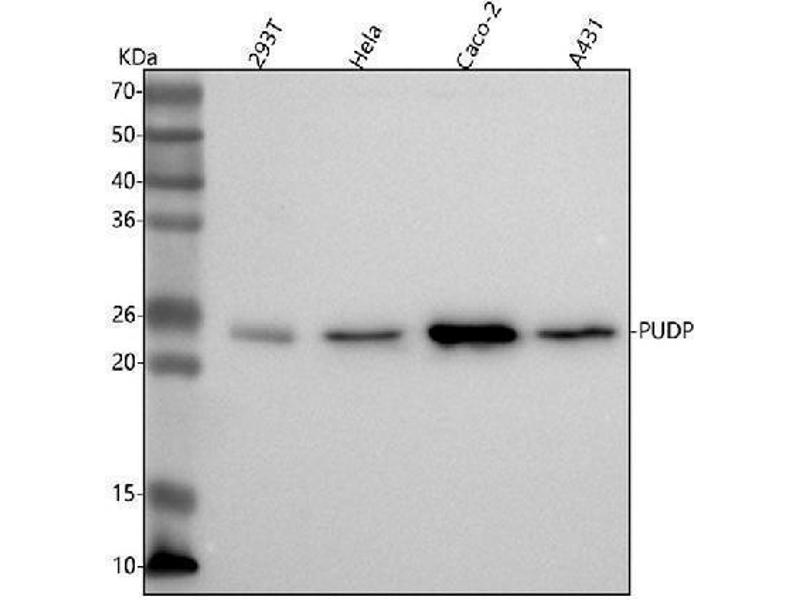 Anti-PUDP Antibody (ABIN7599119). Tested in WB, ELISA applications. This antibody reacts with Human. This is a premium antibody that guarantees superior quality, high affinity, and strong signals with minimal background in Western blot applications.