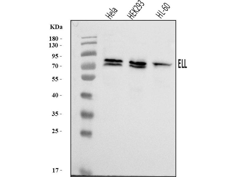 - Anti-ELL Antibody (ABIN7599363). Tested in ELISA, Flow Cytometry, IF, ICC, WB applications. This antibody reacts with Human. This is a premium antibody that guarantees superior quality, high affinity, and strong signals with minimal background in Western blot applications.