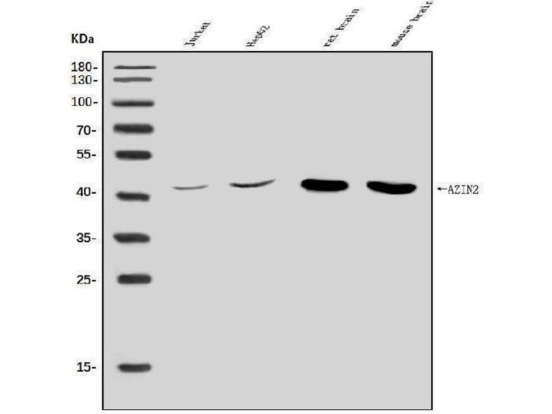 Background: Antizyme inhibitor 2 (AzI2), also known as arginine decarboxylase (ADC), is an enzyme that in humans is encoded by the AZIN2 gene. The protein encoded by this gene belongs to the antizyme inhibitor family, which plays a role in cell growth and proliferation by maintaining polyamine homeostasis within the cell. Antizyme inhibitors are homologs of ornithine decarboxylase (ODC, the key enzyme in polyamine biosynthesis) that have lost the ability to decarboxylase ornithine, however, retain the ability to bind to antizymes. Antizymes negatively regulate intracellular polyamine levels by binding to ODC and targeting it for degradation, as well as by inhibiting polyamine uptake. Antizyme inhibitors function as positive regulators of polyamine levels by sequestering antizymes and neutralizing their effect. This gene encodes antizyme inhibitor 2, the second member of this gene family. Like antizyme inhibitor 1, antizyme inhibitor 2 interacts with all 3 antizymes and stimulates ODC activity and polyamine uptake. However, unlike antizyme inhibitor 1, which is ubiquitously expressed and localized in the nucleus and cytoplasm, antizyme inhibitor 2 is predominantly expressed in the brain and testis and localized in the endoplasmic reticulum-golgi intermediate compartment. Recent studies indicate that antizyme inhibitor 2 is also expressed in specific cell types in ovaries, adrenal glands and pancreas, and in mast cells. The exact function of this gene is not known, however, available data suggest its role in cell growth, spermiogenesis, vesicular trafficking and secretion.
