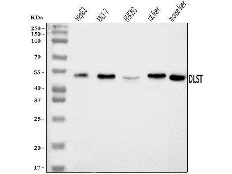 - Anti-DLST Antibody (ABIN7599412). Tested in ELISA, IHC, WB applications. This antibody reacts with Human, Mouse, Rat. This is a premium antibody that guarantees superior quality, high affinity, and strong signals with minimal background in Western blot applications.