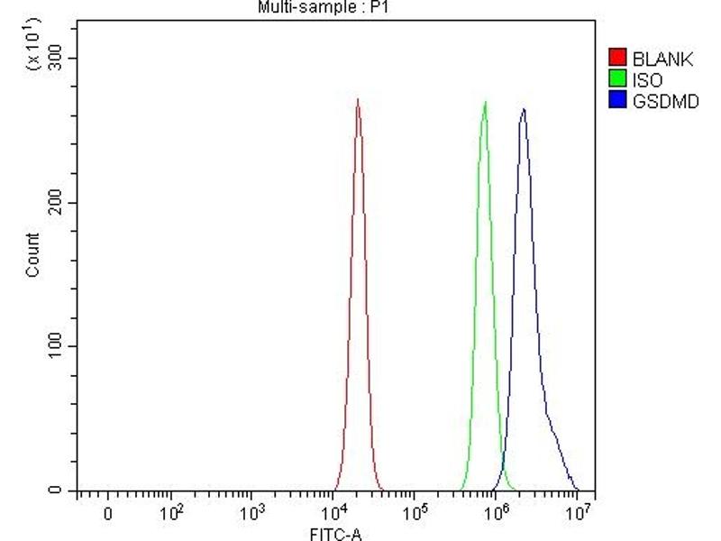 - Anti-GSDMD Antibody (ABIN7599431). Tested in ELISA, Flow Cytometry, IF, IHC, ICC, WB applications. This antibody reacts with Human. This is a premium antibody that guarantees superior quality, high affinity, and strong signals with minimal background in Western blot applications.