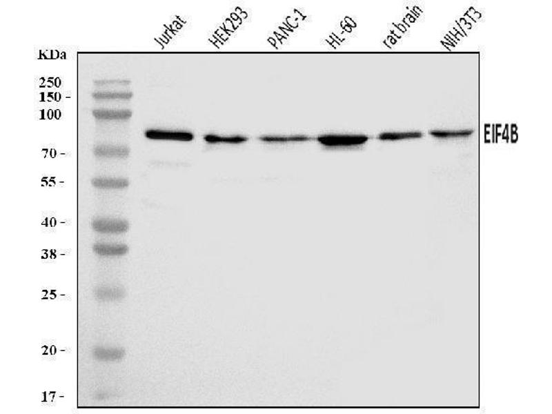 - Anti-EIF4B Antibody (ABIN7599496). Tested in ELISA, Flow Cytometry, IHC, WB applications. This antibody reacts with Human, Mouse, Rat. This is a premium antibody that guarantees superior quality, high affinity, and strong signals with minimal background in Western blot applications.