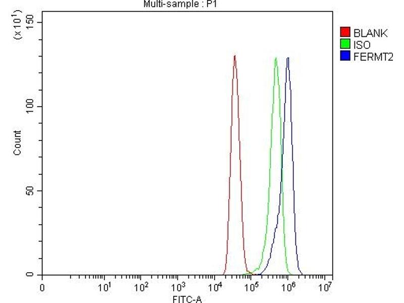Background: Fermitin family homolog 2 (FERMT2) also known as pleckstrin homology domain-containing family C member 1 (PLEKHC1) or kindlin-2 is a protein that in humans is encoded by the FERMT2 gene. Enables several functions, including actin binding activity, phosphatidylinositol-3,4,5-trisphosphate binding activity, and type I transforming growth factor beta receptor binding activity. Involved in several processes, including cell surface receptor signaling pathway, positive regulation of cell differentiation, and positive regulation of cellular component biogenesis. Acts upstream of or within cell adhesion and protein localization to cell junction. Located in cytosol, focal adhesion, and nucleoplasm. Is extrinsic component of cytoplasmic side of plasma membrane. Part of adherens junction and plasma membrane. Biomarker of acute myeloid leukemia.