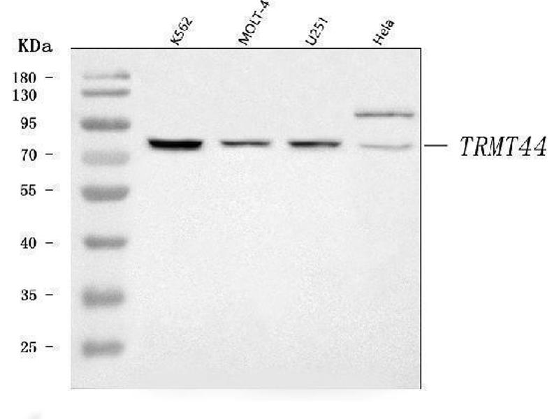 - Anti-TRMT44 Antibody (ABIN7599540). Tested in ELISA, Flow Cytometry, WB applications. This antibody reacts with Human. This is a premium antibody that guarantees superior quality, high affinity, and strong signals with minimal background in Western blot applications.