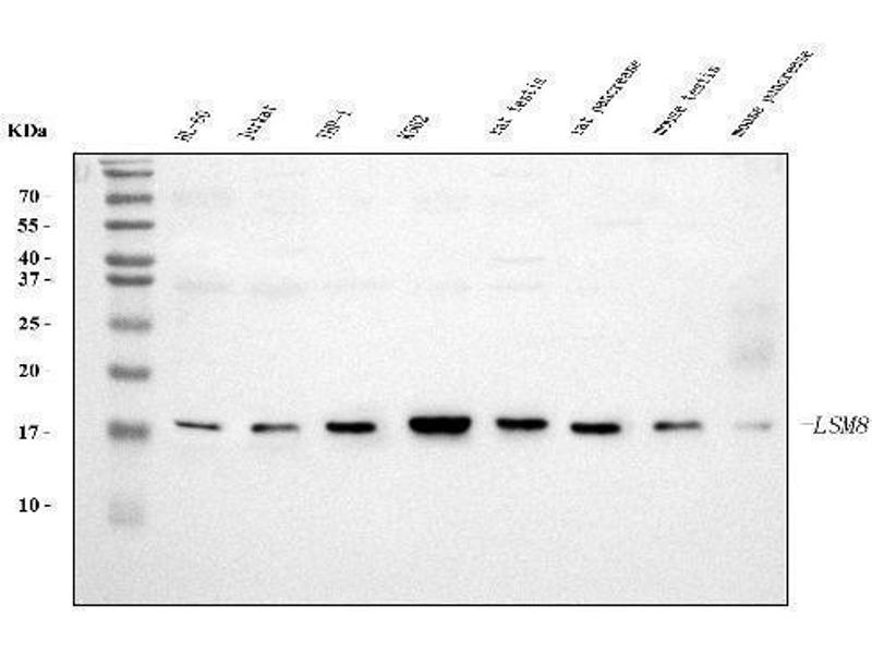 - Anti-LSM8 Antibody (monoclonal, 6B11) (ABIN7599578). Tested in Flow Cytometry, IF, IHC, ICC, WB applications. This antibody reacts with Human, Mouse, Rat. This is a premium antibody that guarantees superior quality, high affinity, and strong signals with minimal background in Western blot applications.