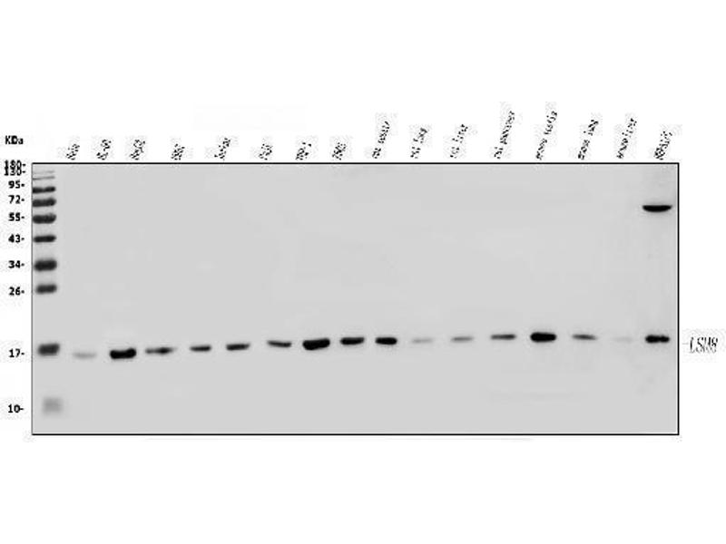 - Anti-LSM8 Antibody (ABIN7599579). Tested in ELISA, Flow Cytometry, IF, IHC, ICC, WB applications. This antibody reacts with Human, Mouse, Rat. This is a premium antibody that guarantees superior quality, high affinity, and strong signals with minimal background in Western blot applications.