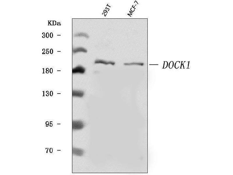 Background: Dock180, (Dedicator of cytokinesis) also known as DOCK1, is a large (~180 kDa) protein involved in intracellular signalling networks. This gene encodes a member of the dedicator of cytokinesis protein family. Dedicator of cytokinesis proteins act as guanine nucleotide exchange factors for small Rho family G proteins. The encoded protein regulates the small GTPase Rac, thereby influencing several biological processes, including phagocytosis and cell migration. Overexpression of this gene has also been associated with certain cancers. Alternative splicing results in multiple transcript variants.
