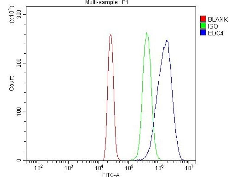 Background: Enhancer of mRNA-decapping protein 4 is a protein that in humans is encoded by the EDC4 gene. Enhancer of mRNA decapping 4 (EDC4) was originally identified as the autoantigen Ge-1 from a Sjgren's syndrome patient later diagnosed with primary biliary cirrhosis. EDC4 (also known as HEDLS) was later identified as an essential component of cytoplasmic P-bodies responsible for mRNA decapping and degradation. Identified EDC4 protein is found as a pair of isoforms generated by alternative splicing and contains several WD domains and a putative nuclear localization signal. EDC4 co-localizes with other P-body decapping proteins such as DCP1A, DCP2 and GW182. Experimental evidence suggests that EDC4 may be involved in miRNA-mediated translation repression.