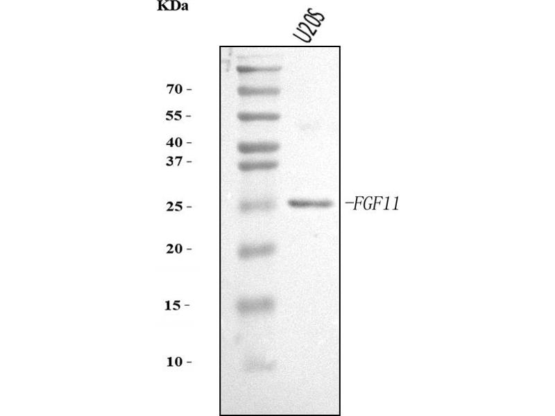 Background: Fibroblast growth factor 11 also known as FGF11 is a human gene. The protein encoded by this gene is a member of the fibroblast growth factor (FGF) family. FGF family members possess broad mitogenic and cell survival activities, and are involved in a variety of biological processes, including embryonic development, cell growth, morphogenesis, tissue repair, tumor growth and invasion. The function of this gene has not yet been determined. The expression pattern of the mouse homolog implies a role in nervous system development. Alternative splicing results in multiple transcript variants.