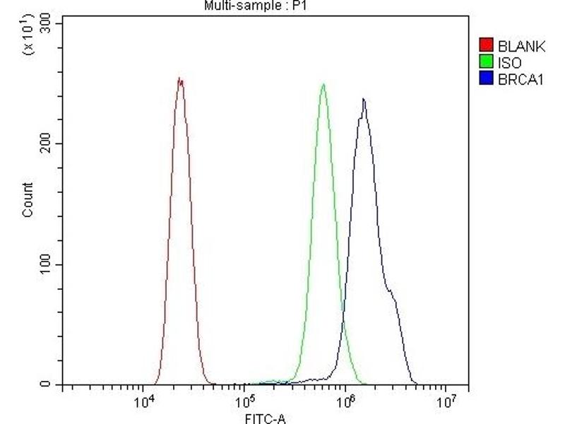 Background: BRCA1, mapped to 17q21.3, is also known as BRCC1. This gene encodes a nuclear phosphoprotein that plays a role in maintaining genomic stability, and it also acts as a tumor suppressor. The encoded protein combines with other tumor suppressors, DNA damage sensors, and signal transducers to form a large multi-subunit protein complex known as the BRCA1-associated genome surveillance complex (BASC). BRCA1 product associates with RNA polymerase II, and through the C-terminal domain, also interacts with histone deacetylase complexes. This protein thus plays a role in transcription, DNA repair of double-stranded breaks, and recombination. In addition to it, BRCA1 may normally serve as a negative regulator of mammary epithelial cell growth and that this function is compromised in breast cancer either by mutation or by alterations in gene expression.