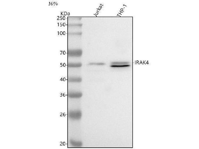 Anti-IRAK4 Antibody (ABIN7600110). Tested in WB, ELISA applications. This antibody reacts with Human. This is a premium antibody that guarantees superior quality, high affinity, and strong signals with minimal background in Western blot applications.