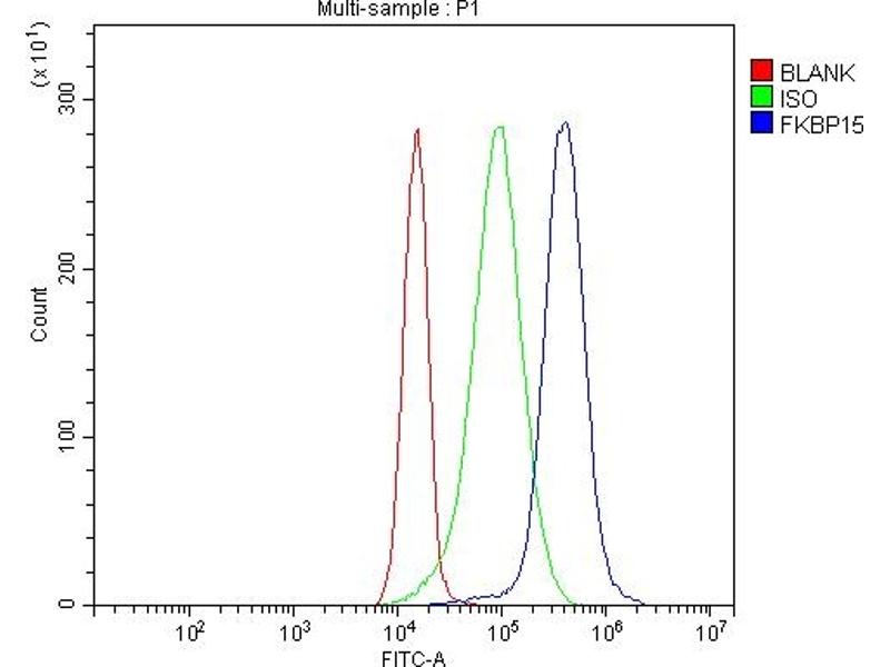 Background: FKBP15, also known as FKBP133, is a member of the FK506-binding protein family, a group of proteins initially identified as immunophilins, targets for the immunosupressant drugs FK506 and Rapamycin. FKBP15 is expressed in the developing nervous system and contains a domain similar to Wiskott-Aldrich syndrome protein homology region 1 (WH1) in addition to the FK506-binding protein motif. FKBP15 is distributed along the axonal shafts and partially co-localizes with F-actin in the growth cones of dorsal root ganglion neurons, overexpression of FKBP15 resulted in the number of filopodia in transfected neurons, suggesting that FKBP15 modulates growth cone behavior. FKBP15 has also been shown to associate with both microtubules and the actin filament systems and disruption of its expression by RNAi resulted in delayed transport of early endosomes in HeLa cells indicating that FKBP15 is also involved in the transport of early endosomes. At least three isoforms of FKBP15 are known to exist.