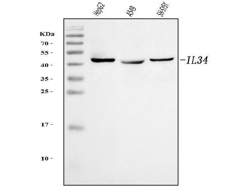 - Anti-IL34 Antibody (ABIN7600622). Tested in ELISA, IHC, WB applications. This antibody reacts with Human. This is a premium antibody that guarantees superior quality, high affinity, and strong signals with minimal background in Western blot applications.