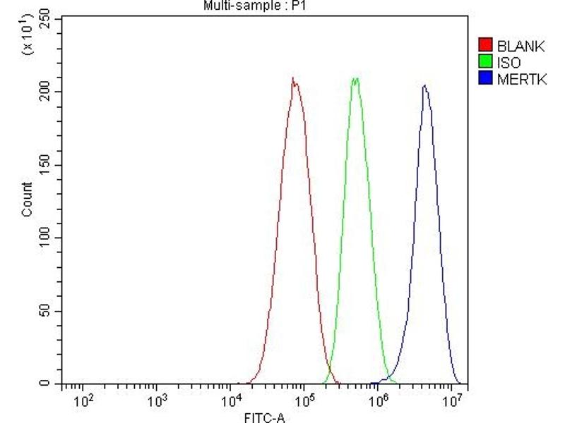 Background: Proto-oncogene tyrosine-protein kinase MER, also called MERTK is an enzyme that in humans is encoded by the MERTK gene. This gene is a member of the MER/AXL/TYRO3 receptor kinase family and encodes a transmembrane protein with two fibronectin type-III domains, two Ig-like C2-type (immunoglobulin-like) domains, and one tyrosine kinase domain. This gene is mapped to 2q13. MERTK signaling plays a role in various processes such as macrophage clearance of apoptotic cells, platelet aggregation, cytoskeleton reorganization and engulfment. This gene is also very important in inhibition of Toll-like receptors (TLRs)-mediated innate immune response by activating STAT1, which selectively induces production of suppressors of cytokine signaling SOCS1 and SOCS3.