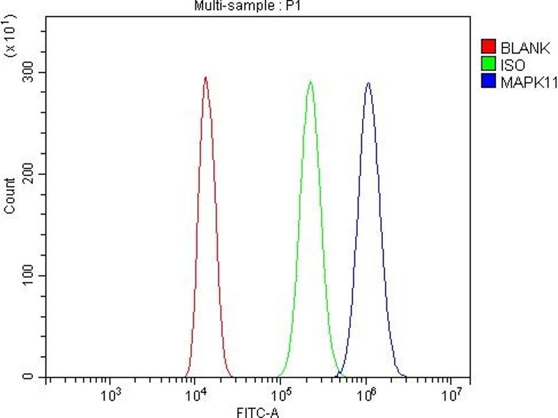 Background: Mitogen-activated protein kinase 11 is an enzyme that in humans is encoded by the MAPK11 gene. This gene encodes a member of a family of protein kinases that are involved in the integration of biochemical signals for a wide variety of cellular processes, including cell proliferation, differentiation, transcriptional regulation, and development. The encoded protein can be activated by proinflammatory cytokines and environmental stresses through phosphorylation by mitogen activated protein kinase kinases (MKKs). Alternative splicing results in multiple transcript variants.