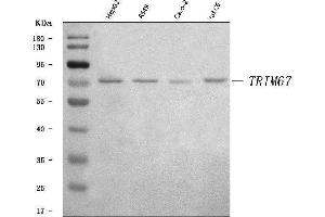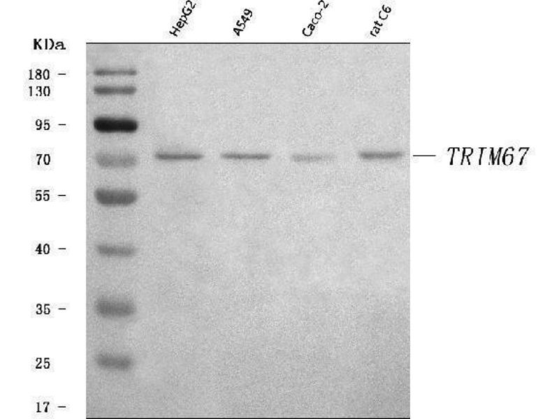 - Anti-TRIM67 Antibody (ABIN7600845). Tested in ELISA, Flow Cytometry, WB applications. This antibody reacts with Human, Rat. This is a premium antibody that guarantees superior quality, high affinity, and strong signals with minimal background in Western blot applications.