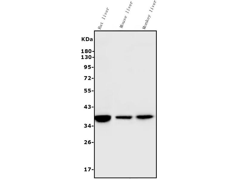 Western blot, 0.1-0.5 μg/mL, Monkey, Mouse, Rat
