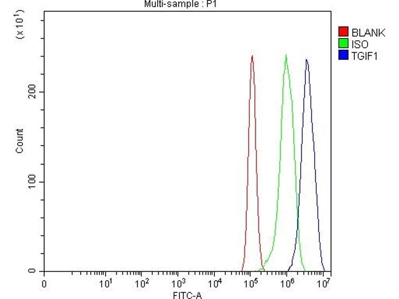 Background: Homeobox protein TGIF1 is a protein that, in humans, is encoded by the TGIF1 gene. The protein encoded by this gene is a member of the three-amino acid loop extension (TALE) superclass of atypical homeodomains. TALE homeobox proteins are highly conserved transcription regulators. This particular homeodomain binds to a previously characterized retinoid X receptor responsive element from the cellular retinol-binding protein II promoter. In addition to its role in inhibiting 9-cis-retinoic acid-dependent RXR alpha transcription activation of the retinoic acid responsive element, the protein is an active transcriptional co-repressor of SMAD2 and may participate in the transmission of nuclear signals during development and in the adult. Mutations in this gene are associated with holoprosencephaly type 4, which is a structural anomaly of the brain. Alternative splicing has been observed at this locus and multiple splice variants encoding distinct isoforms are described.