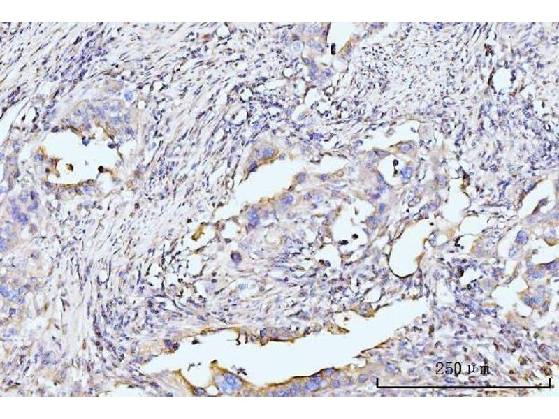 Tissue Specificity: Expressed in breast, ductal and invasive ductal carcinomas of the breast, sporadic colorectal adenomas and carcinomas (at protein level). Expressed in fetal brain. Expressed in lung, amygdala, eye, prostate, pancreatic and prostate cancers, head and neck tumors and embryonal tumor.