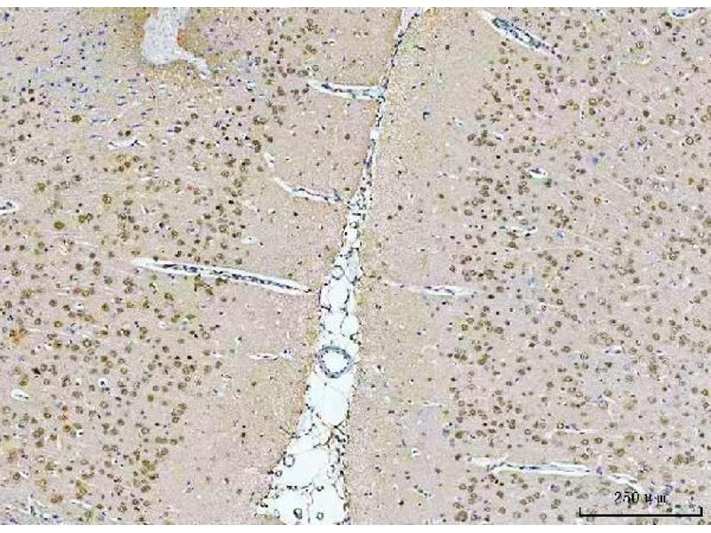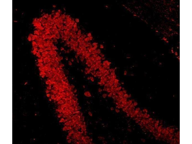 Background: RNA binding protein, fox-1 homolog (C. elegans) 3 (Rbfox3) is a protein that in humans is encoded by the RBFOX3 gene. This gene encodes a member of the RNA-binding FOX protein family which is involved in the regulation of alternative splicing of pre-mRNA. The protein has an N-terminal proline-rich region, an RNA recognition motif (RRM) domain, and a C-terminal alanine-rich region. This gene produces the neuronal nuclei (NeuN) antigen that has been widely used as a marker for post-mitotic neurons. This gene has its highest expression in the central nervous system and plays a prominent role in neural tissue development and regulation of adult brain function. Mutations in this gene have been associated with numerous neurological disorders. Alternative splicing of this gene results in multiple transcript variants encoding distinct isoforms.
