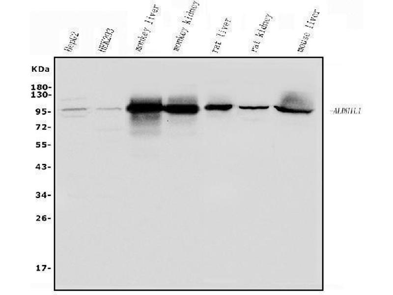 - Anti-ALDH1L1 Antibody (ABIN7601093). Tested in ELISA, Flow Cytometry, IF, IHC, ICC, WB applications. This antibody reacts with Human, Monkey, Mouse, Rat. This is a premium antibody that guarantees superior quality, high affinity, and strong signals with minimal background in Western blot applications.