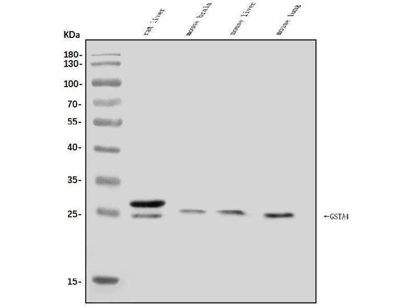 - Anti-GSTA4 Antibody (ABIN7601112). Tested in ELISA, WB applications. This antibody reacts with Mouse, Rat. This is a premium antibody that guarantees superior quality, high affinity, and strong signals with minimal background in Western blot applications.