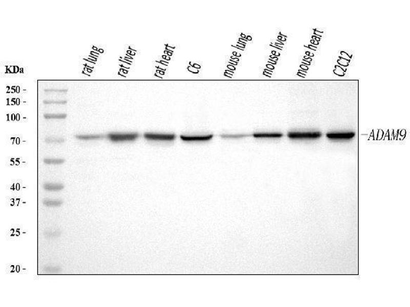 - Anti-ADAM9 Antibody (ABIN7601124). Tested in ELISA, Flow Cytometry, WB applications. This antibody reacts with Human, Mouse, Rat. This is a premium antibody that guarantees superior quality, high affinity, and strong signals with minimal background in Western blot applications.