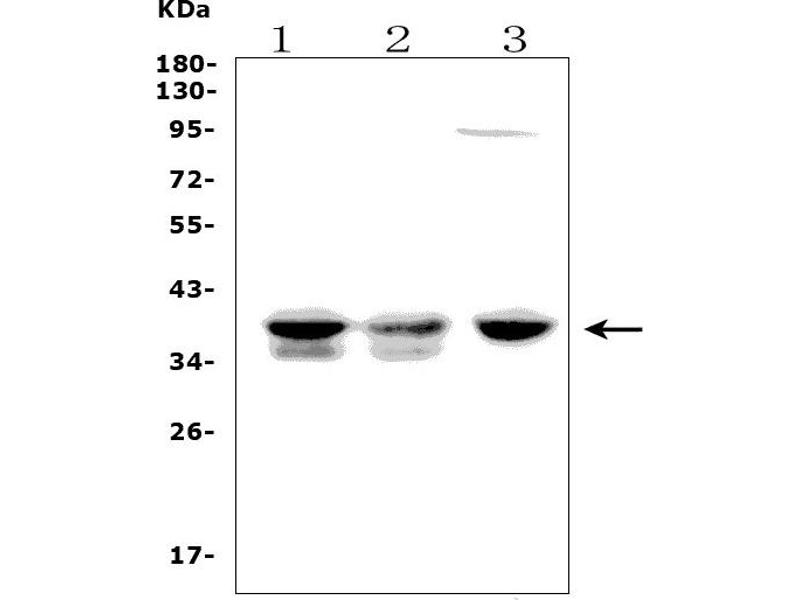 Western blot, 0.25-0.5 μg/mL, Human, Rat