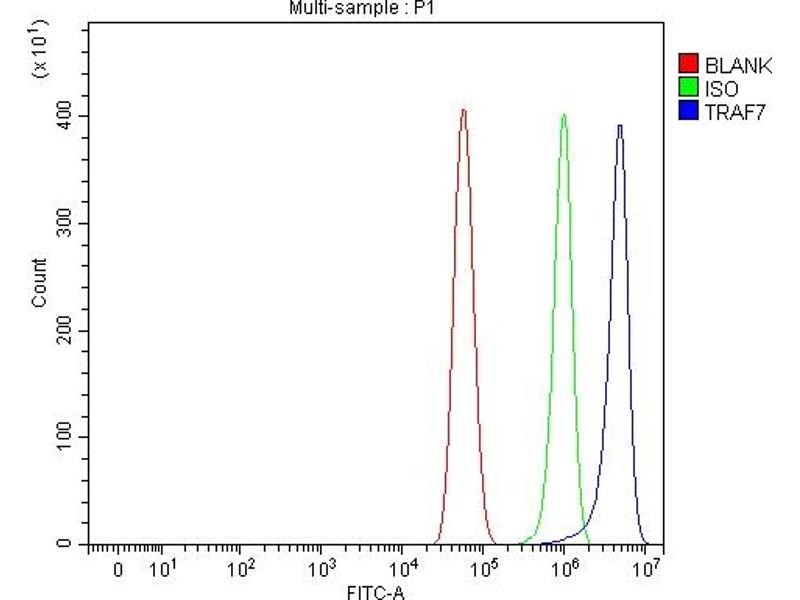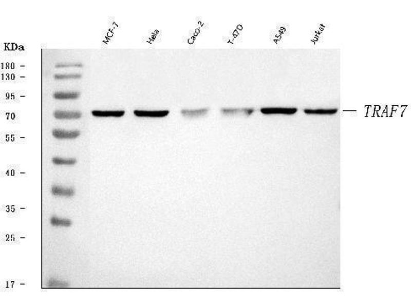- Anti-TRAF7 Antibody (ABIN7601144). Tested in ELISA, Flow Cytometry, WB applications. This antibody reacts with Human. This is a premium antibody that guarantees superior quality, high affinity, and strong signals with minimal background in Western blot applications.