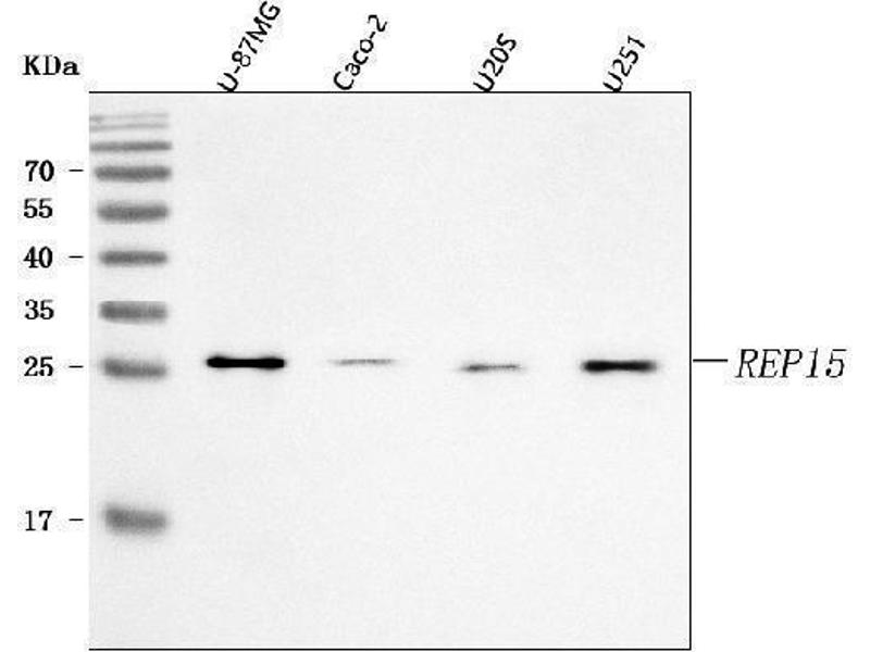 - Anti-REP15 Antibody (ABIN7601178). Tested in ELISA, Flow Cytometry, WB applications. This antibody reacts with Human. This is a premium antibody that guarantees superior quality, high affinity, and strong signals with minimal background in Western blot applications.