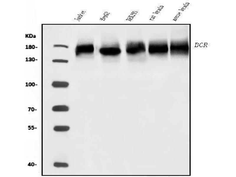 - Anti-BCR Antibody (ABIN7601180). Tested in ELISA, Flow Cytometry, WB applications. This antibody reacts with Human, Mouse, Rat. This is a premium antibody that guarantees superior quality, high affinity, and strong signals with minimal background in Western blot applications.