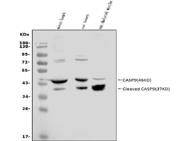 Background: Caspase-9 is an enzyme that in humans is encoded by the CASP9 gene. This gene is part of a family of caspases, aspartate-specific cysteine proteases well studied for their involvement in immune and apoptosis signaling. This protein, the initiator caspase, is activated after cytochrome c release from mitochondria and targets downstream effectors. In mouse, deficiency of this gene can cause perinatal lethality. This protein may have a role in normal brain development. Alternative splicing results in multiple transcript variants that encode different protein isoforms.