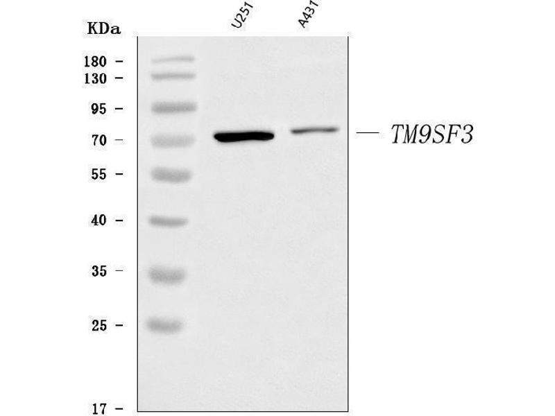 - Anti-TM9SF3 Antibody (ABIN7601272). Tested in ELISA, WB applications. This antibody reacts with Human. This is a premium antibody that guarantees superior quality, high affinity, and strong signals with minimal background in Western blot applications.